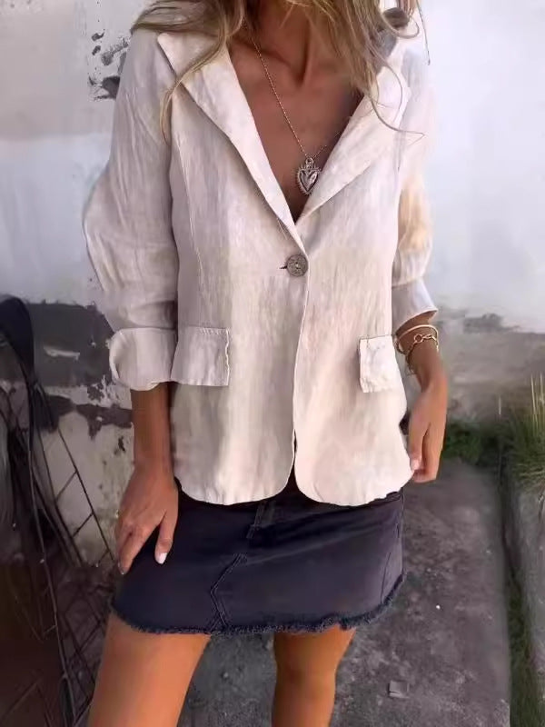This blazer offers the perfect balance between casual comfort and modern refinement. With its relaxed cut, single-button closure, and practical pocket details, it’s an easy piece to dress up or down, making it a true wardrobe essential.